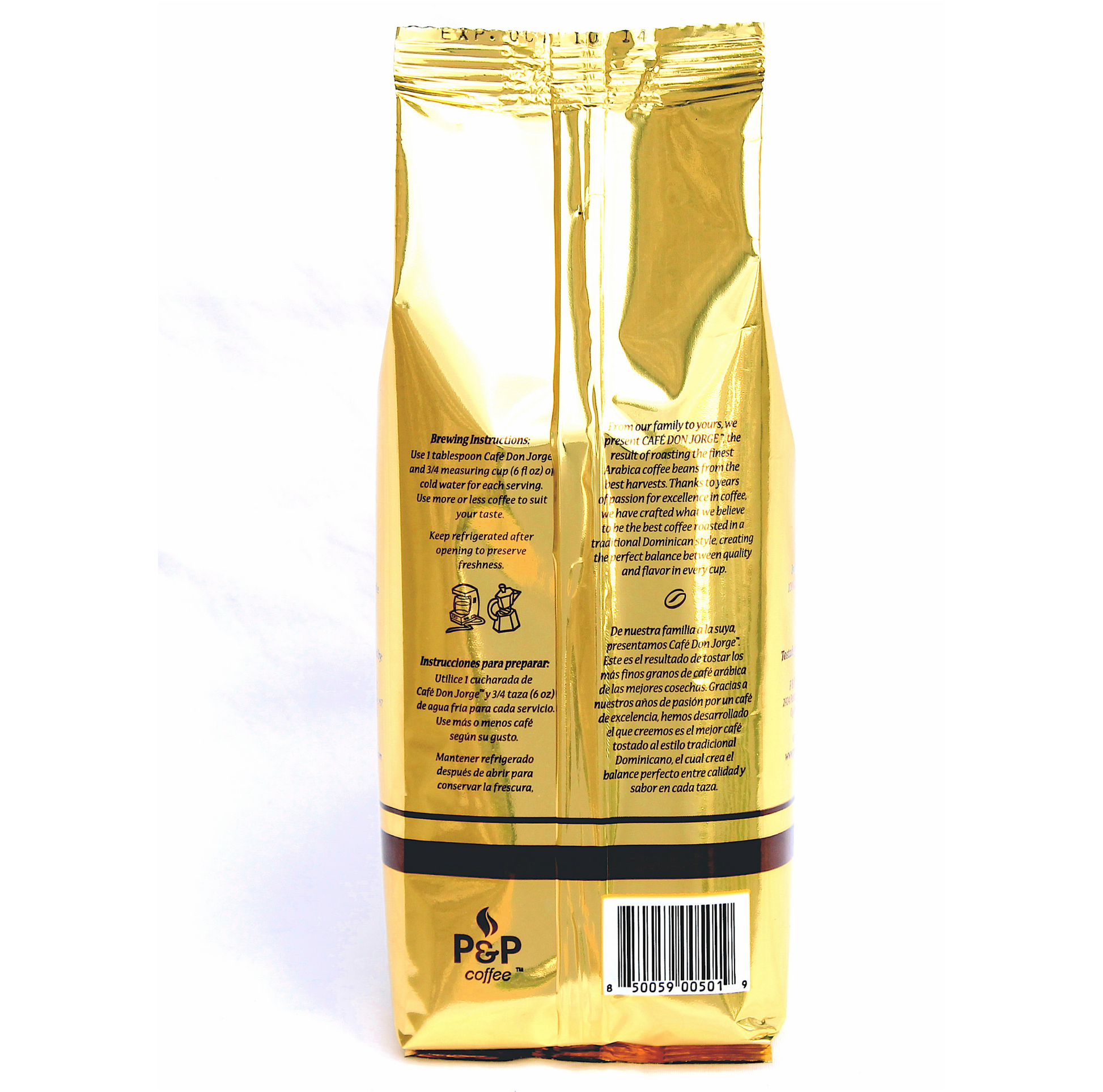 Our Café Don Jorge Dominican Reserve is a blend of 100 % high altitude Arabica beans from the Dominican Republic. Cafe Don Jorge Dominican Reserve is a French Roast and is available ground in a 16 oz bag.